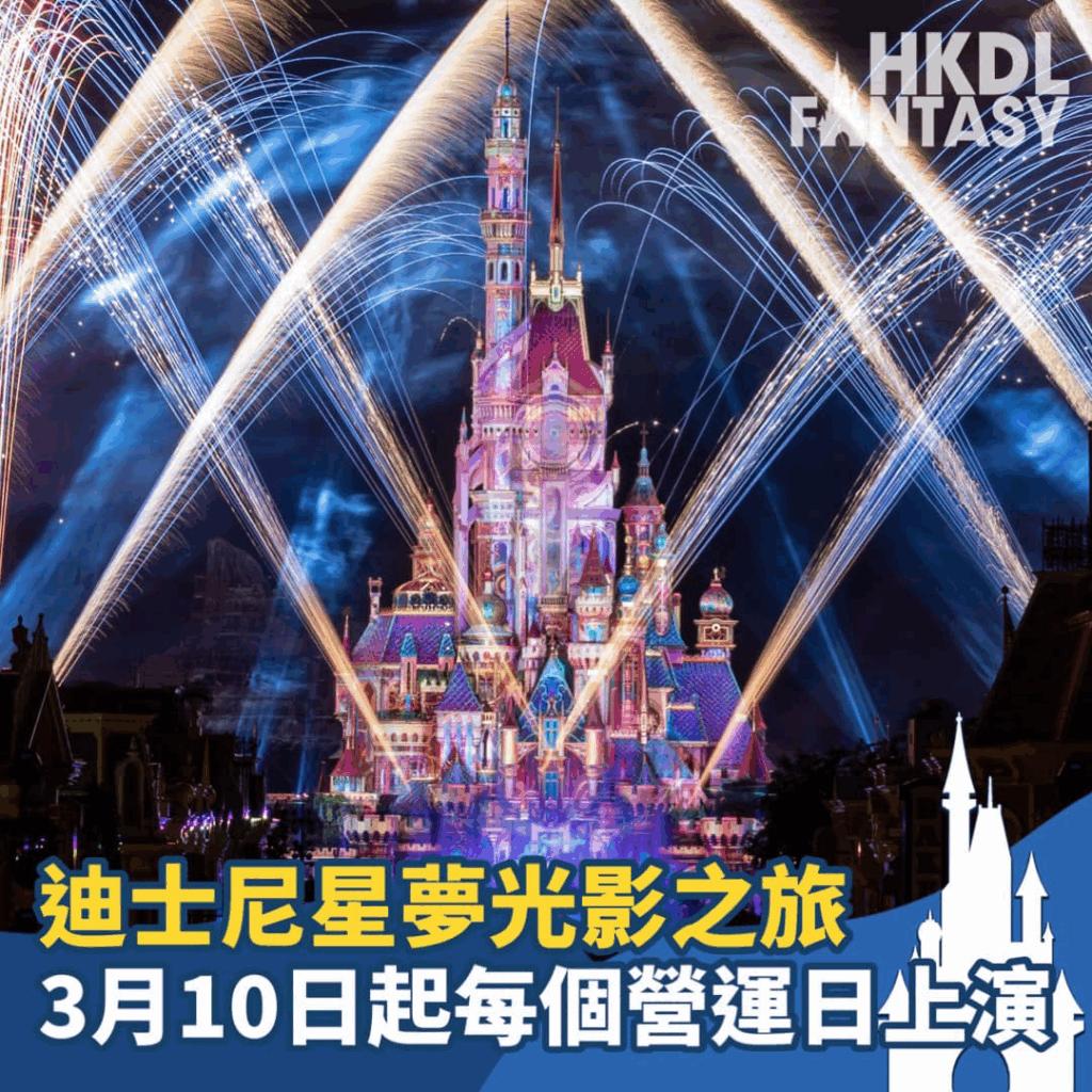 香港迪士尼樂園於社交平台宣布「迪士尼星夢光影之旅」將於3月10日起每個營運日子都會上演!